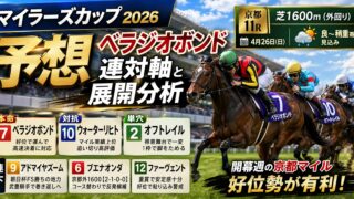 Uncategorized 皐月賞2026予想 ロブチェン本命の連対軸と買い目 皐月賞2026の最新枠順・馬場見込み・展開・追い切りを総合分析。ロブチェンを本命に、連対軸としての根拠を明確化。対抗・単穴・連下3頭、買い目までわかりやすく整理。 2026.04.17 Uncategorized