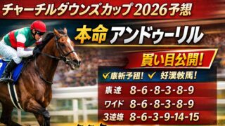 2026重賞予想 チャーチルダウンズカップ2026予想 本命アンドゥーリル チャーチルダウンズカップ2026の最新予想。枠順・追い切り・阪神芝1600m外回りの適性・展開を整理し、本命アンドゥーリルから対抗、単穴、連下3頭、買い目までわかりやすく解説。 2026.04.03 2026重賞予想4月
