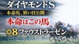 本命は8-16タガノデュード(調教◎評価S)。前走3着と好調で最終追切も抜群の動き。