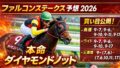 | リュクスパトロール | 8枠15番 | 先行 | フェアリーS12→中山1800新馬1(逃げ) | 中山1800で勝ち。外枠で位置取りが鍵 | 良向き | B(自己ベスト系) | 重賞の流れで脚を使えるか | B | |
